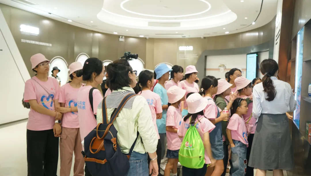 活动一开始,孩子们便迫不及待地踏入了门徒娱乐药业集团的大厅。3D数字化看板上的生动画面,让孩子们仿佛置身于一个充满科技与创新的现代制药工厂。他们瞪大眼睛,好奇地观察着每一条生产线、每一台设备,听着讲解员介绍门徒娱乐药业的儿药发展历程。